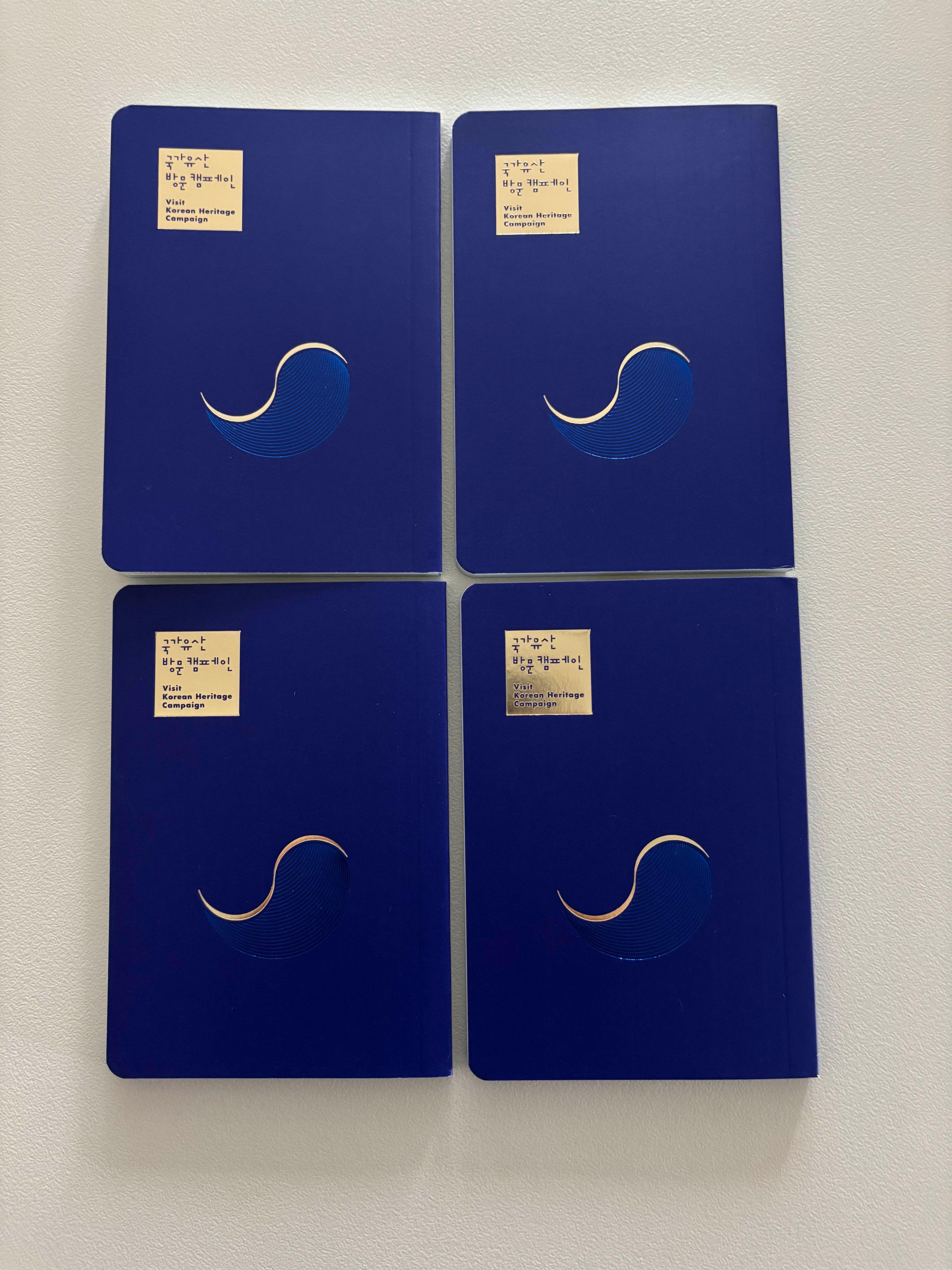 - 고급스러운 짙은 남색 커버 + 금박 로고, 외국인은 빨간색 커버예요.